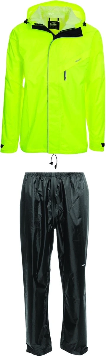 - De Passat is een compleet regenpak met broek en jas. Dankzij de 100 procent waterdichtheid is hij een slimme keuze op regenachtige dagen.