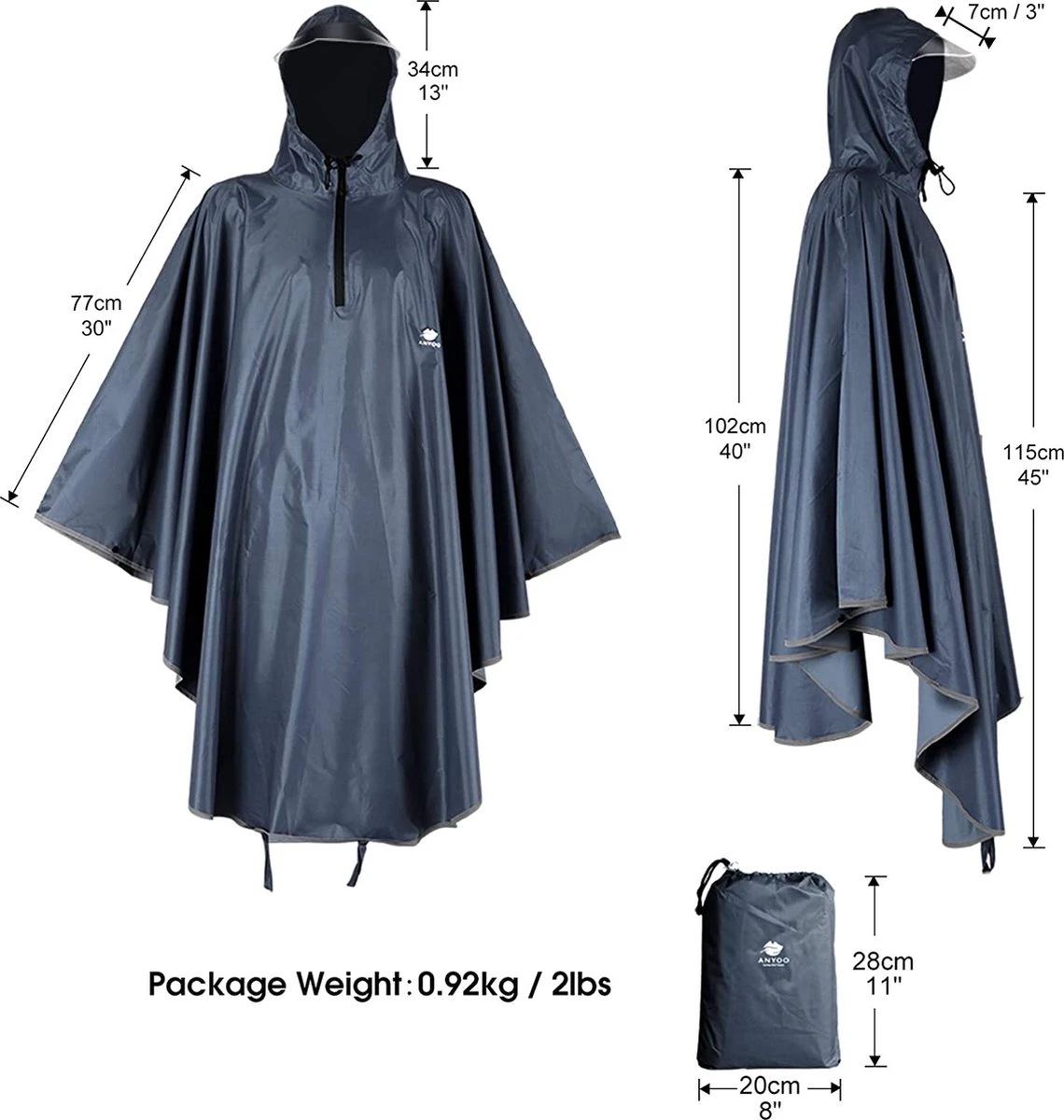 - Draagbaar en compact – De poncho kan worden opgevouwen tot een compact formaat, met een bijpassende kleurzak van ongeveer 27 x 20 cm voor eenvoudig opbergen en meenemen in handtas, rugzak of koffer in geval van plotselinge regen. En hij weegt 920 g, het geschikte gewicht zorgt ervoor dat hij niet in de wind fladdert en uw zicht belemmert tijdens het fietsen op drukke wegen.