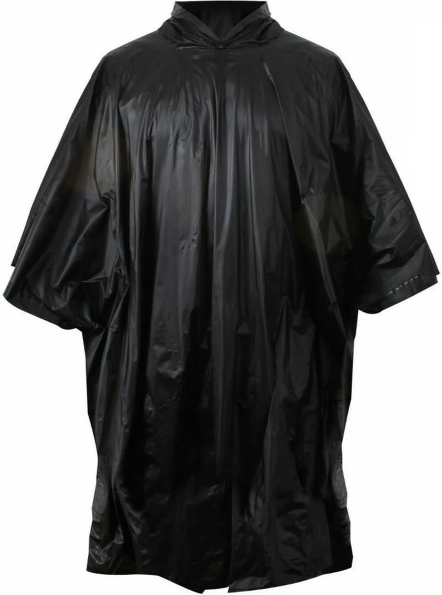 Duurzame regenponcho zwart. Herbruikbare regenponcho/noodponcho met capuchon voor volwassenen. Poncho bevat drukknopen voor het aanpassen van de pasvorm en wordt geleverd in een hersluitbaar tasje. Materiaal: PVC