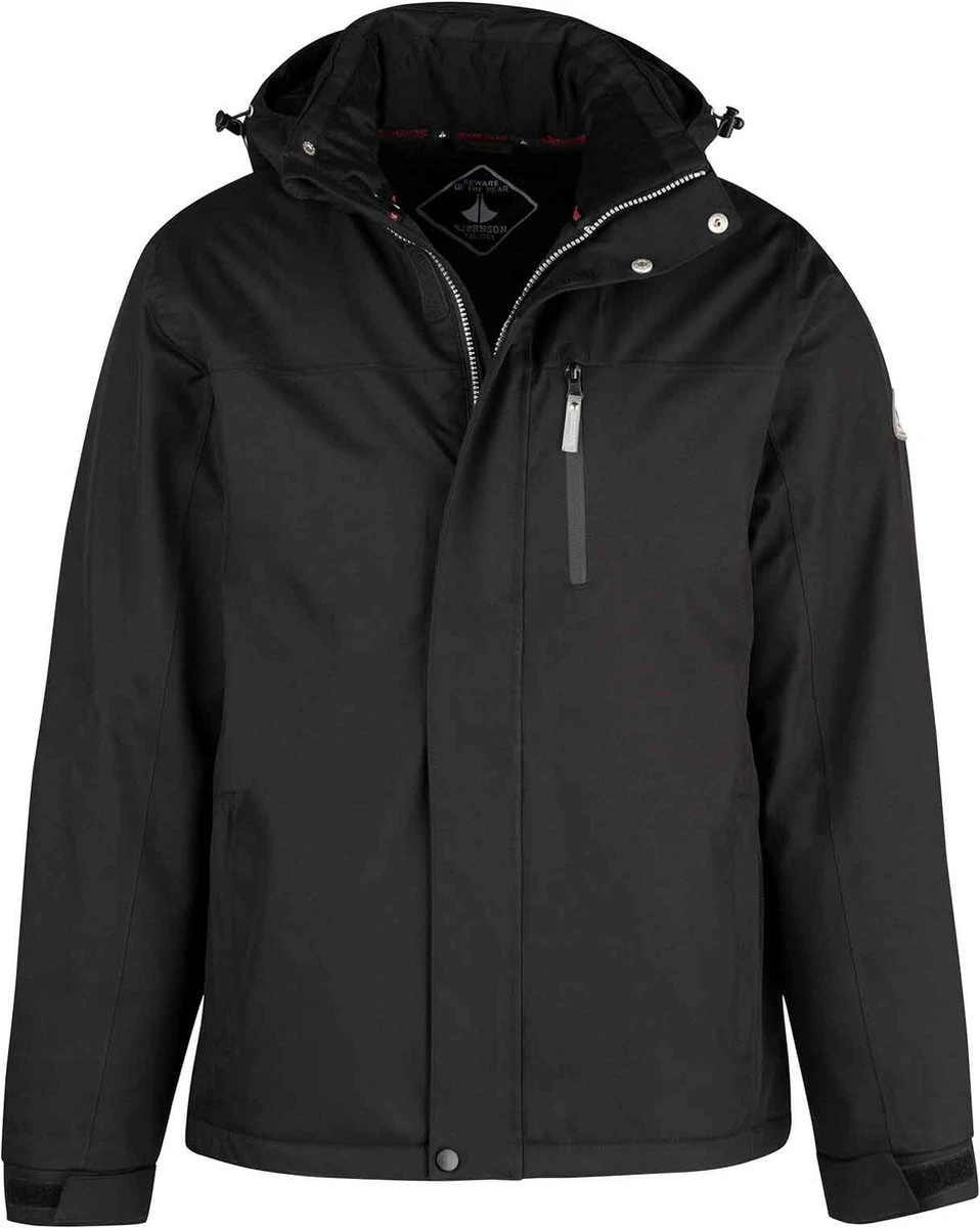 De gewatteerde stof en winddichte voering maken de regenjas winddicht. Elastische manchetten met windvanger en klittenband verstelling zorgen dat de mouwen winddicht afsluiten. De verstelbare taille en kraag en een flap over de rits houden wind en regen tegen. Aan de binnenzijde is de jas afgewerkt met een warme fleece voering in de body, mouwen en capuchon. De winterjas is gemaakt van polyester en is voorzien van een warme gewatteerde voering in body, mouwen en capuchon. Deze regen winterjas heeft praktische opbergzakken: twee heupzakken en een borstzak met rits met en een binnenzak met klittenbandsluiting. Deze BJØRNSON winterjas is gemaakt om je warmte en comfort te bieden.