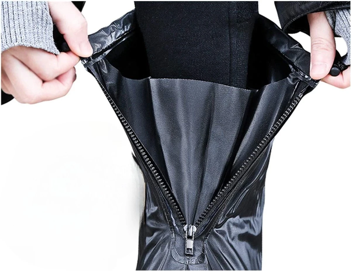 Misschien dat je je af vraagt, maar hoe werkt het dan? Dat is heel simpel! Trek de hoesjes eenvoudig over je schoenen heen, je ritst de hoes dicht en daarna trek je het trekkoord strak om je been heen voor een uitstekende pasvorm.