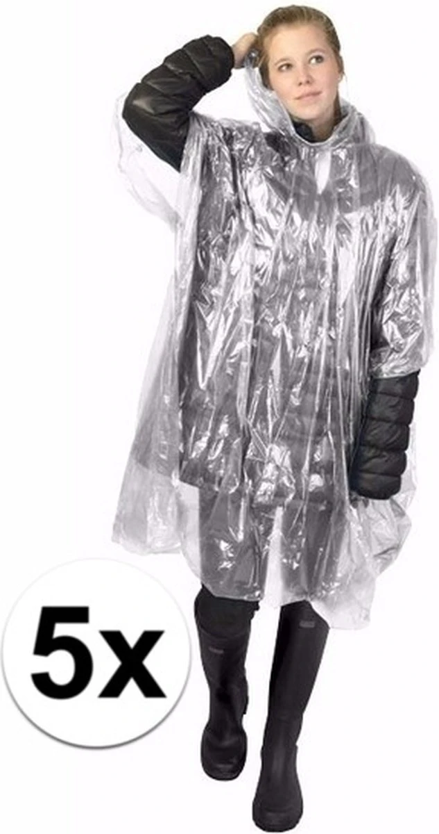 - Voordelige regenponcho’s transparant, pakket van 5 stuks
