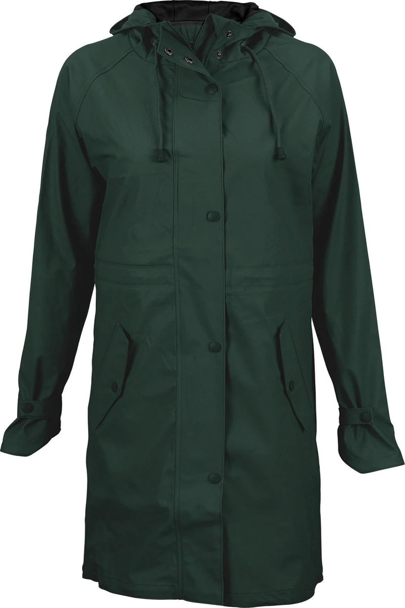 Geen kans om nat te worden met deze functionele en trendy regenjas met capuchon van Ralka. Gemaakt van hoogwaardig materiaal is de jas waterdicht tot minimaal een waterkolom van 3000 mm, ruim voldoende om je tijdens een wandeling of op de fiets met regenachtig weer droog te houden. De regenmantel is voorzien van een 2-way rits en steekzakken met regenoverslagen. De jas is vervaardigd met gelaste naden en een matte PU coating voor extra waterdichtheid. Een opening in de rug van de jas zorgt voor voldoende ventilatie terwijl de jas als geheel winddicht blijft. De getailleerde pasvorm van de Mizzle is naar wens in te stellen en zorgt voor een stijlvolle look. Via een elastisch koord met stopper is de capuchon naar wens verstelbaar. Bij de mouwen is de breedte met drukknopen aan te passen. Kortom, de perfecte jas voor typisch Nederlandse buien.