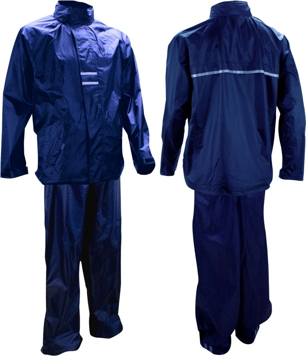 Nooit meer een nat pak met dit Ralka Regenpak! Dit Ralka 2-delige regenpak voor volwassenen is ideaal voor het fietsen in slecht weer of tijdens een andere buitenactiviteit. Het beschermt tegen regen en wind, zelfs de naden zijn volledig getaped dus ook daar komt geen water naar binnen. Het pak heeft een fijne regenjas met raglan mouwen en reflecterende details. Zo ben je niet alleen beschermd tegen water en wind, maar val je ook nog eens op in het donker. Het regenjack heeft een capuchon in de kraag, een overslag met extra ventilatie op de rug en verstelbare klittenbandsluitingen bij de mouw. Zo sluit het jasje goed aan en komt er geen regenwater naar binnen. Het regenjack heeft twee steekzakken en een waterdichte rits.