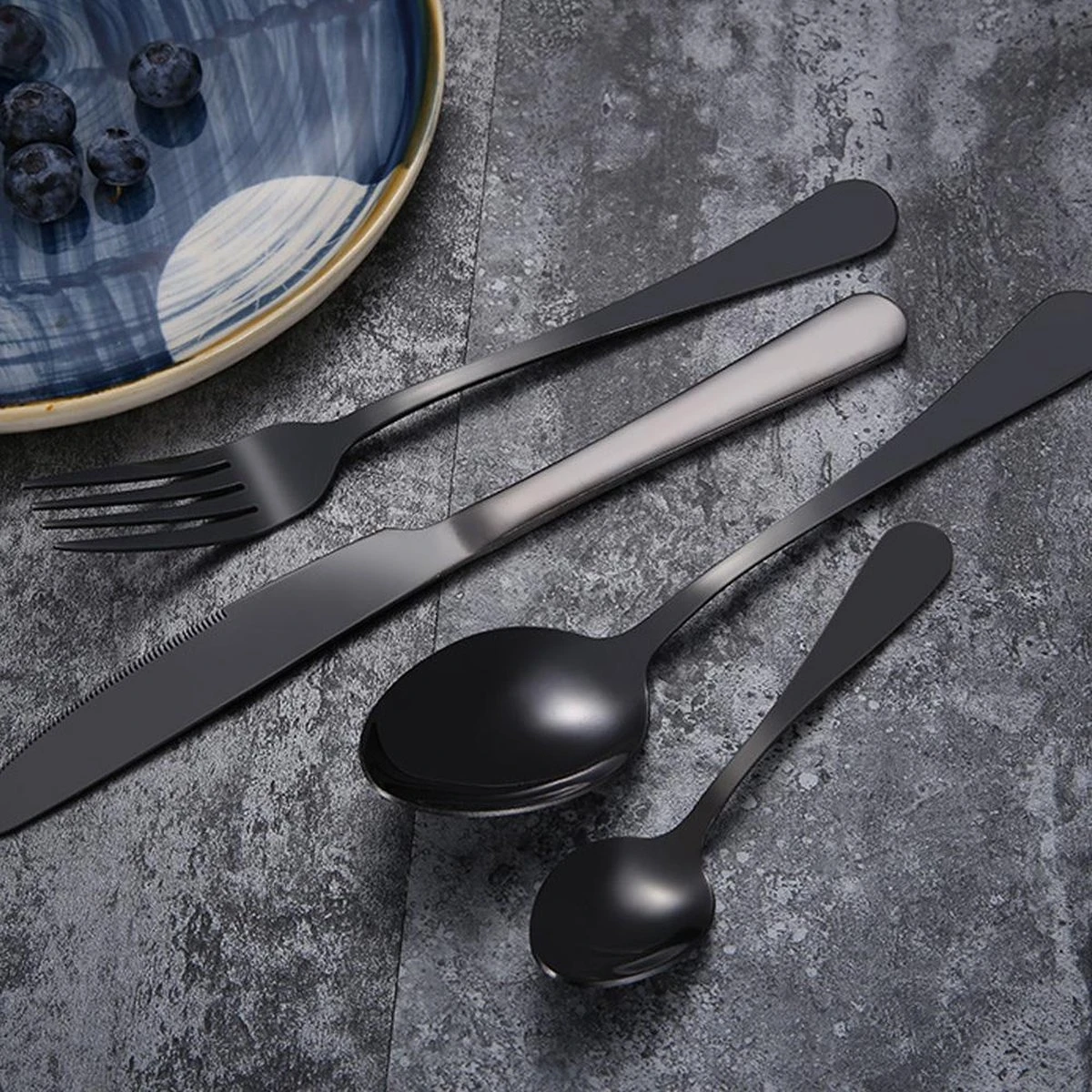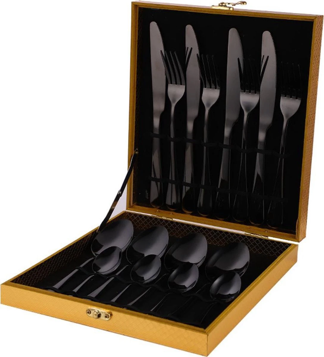 SMILON Bestekset In Koffer Zwart – 16 Delig Messen Vorken Lepels Voor 4 Personen – Camping – Ideaal Voor Reizen, Kamperen, Thuis