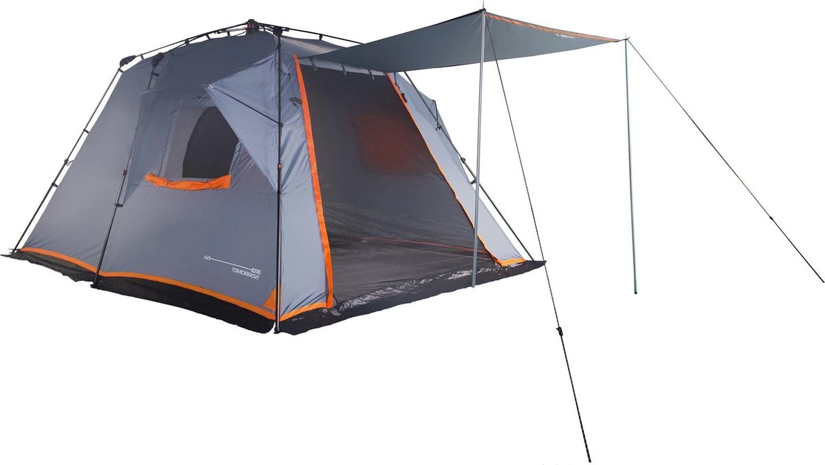 Where Tomorrow 5-persoons pop-up gezinstent: ideaal voor kamperen, wandelen, hikes, reizen, op het strand, in de tuin of festivals; voor een onvergetelijke vakantie in de natuur. Plan uw campingvakantie of uw volgende survivalexpeditie! Effectieve bescherming tegen zon, regen, wind en zandverstuiving; verkrijgbaar in grijs